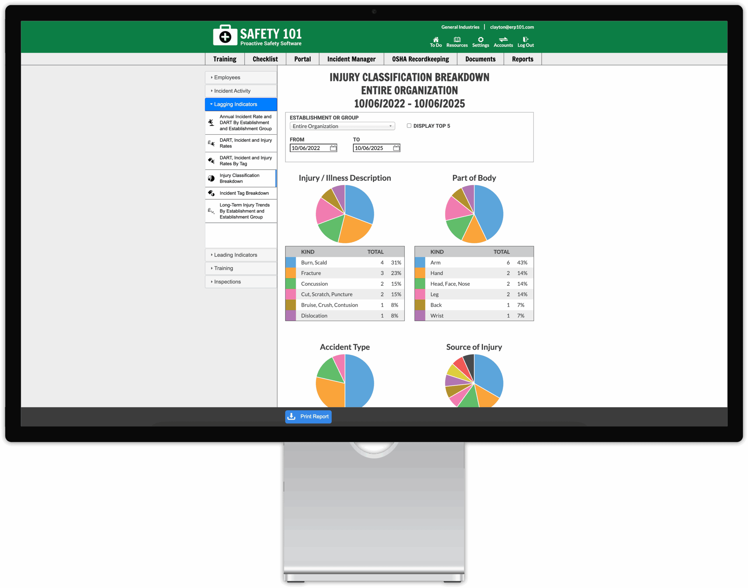 - Generate management reports, OSHA 300 forms, or KPIs such as leading and lagging indicators